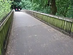 By 1911 the truss bridge was covered with a roof and walls for protection from the elements and remained in use until the concrete Pacific Highway Bridge of 1920 was completed. "Charcoal haulers would cross the covered bridge and follow the trail along the river..."(Mary Goodall, Oregon's Iron Dream). Thereafter, the covered bridge was used by those on foot until it rotted and collapsed in the 1930s. Following World War II a replacement was built and used until 1975 when it became unstable and was removed by the National Guard.[10]