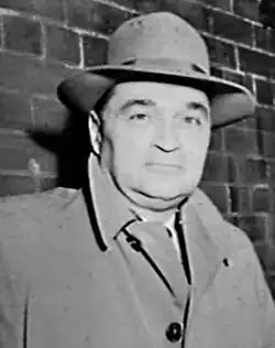 Richards' first in-person meeting with Petrov took place on 27 February 1954. In Bialoguski's flat, Richards offered Petrov political asylum and on 19 March offered him £5,000 in cash.[9] In all, Richards met with Petrov twelve times, frequently recording him and negotiating the terms of the defection, particularly aiming to make sure Petrov brought with him valuable documents to share with the Australian government.[10] Petrov's defection ultimately took place on 3 April and was announced on the 13th by then–Prime Minister Robert Menzies.[4][11][12] In response, the Soviet Union closed its Australian Embassy on 23 April.[3] Richards debriefed Petrov, starting on the day of his formal defection.[13]