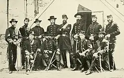 At the start of the Civil War Stoneman was in command of Fort Brown, Texas, and refused the order of Maj. Gen. David E. Twiggs, a southern sympathizer, to surrender to the newly established Confederate authorities there, escaping to the north with most of his command.[4] Returning east, he was reassigned to the 1st US Cavalry and promoted to major on May 9, 1861. Stoneman then served as adjutant to General George McClellan during his campaign in Western Virginia during the summer. After McClellan became commander of the newly formed Army of the Potomac, he assigned Stoneman as his chief of cavalry; Stoneman was promoted to brigadier general of volunteers on August 13.[5] Stoneman had a difficult relationship with McClellan, who did not understand the proper use of cavalry in warfare, relegating it to assignment in small units to infantry brigades.[6]