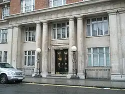 The Irish writer Thomas Moore lived in the street and a blue plaque now commemorates him.[4] At the southern end of Bryanston Square is a memorial fountain to William Pitt Byrne, editor of Morning Post newspaper.[5] Marie Belloc Lowndes, author of The Lodger, was born in the street in 1868.[6] In the 1930s Wallis Simpson lived in an apartment in Bryanston Court, where her future husband Edward, Prince of Wales used to call on her.[7]