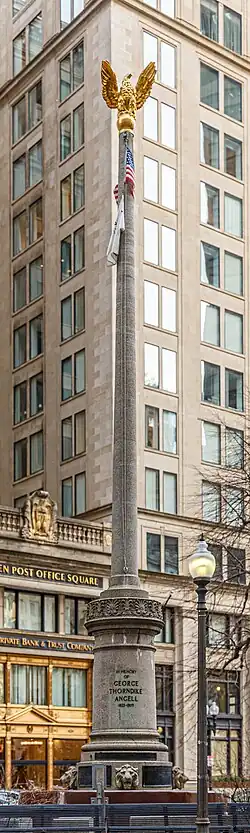 The George Thorndike Angell Memorial (sometimes called Angell Memorial Fountain or George Thorndike Angell Memorial Horse Fountain) is a monument commemorating George Thorndike Angell in Post Office Square in Boston, Massachusetts.[1]