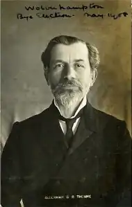 Thorne had stood unsuccessfully for election twice in the South and West divisions of Wolverhampton before getting elected in 1908 at by-election on 5 May to succeed Sir Henry Fowler who had been made a peer.