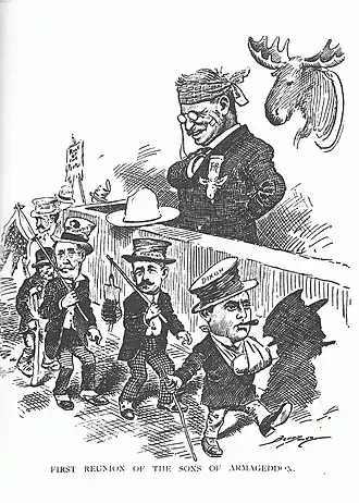 After the defeat the loser reviews his wounded lieutenants Frank Munsey, Perkins and Joseph M. Dixon. From The Evening Star (Washington DC) Dec 10, 1912