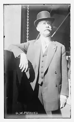 George Walbridge Perkins I (January 31, 1862 – June 18, 1920) was an American politician and businessman. He was a leader of the Progressive Movement, especially Theodore Roosevelt's presidential candidacy for the Progressive Party in 1912.