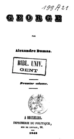 Georges is a novel by Alexandre Dumas, père set on Isle de France (Mauritius), from 1810 to 1824. This novel is of particular scholarly interest because Dumas reused many of its ideas and plot devices later in The Count of Monte Cristo and because race and racism are at the center of the novel, a topic Dumas rarely wrote about, despite his part-African ancestry.[1] Georges was first published in 1843.[2] It has been republished in English as George; or, the Planter of the Isle of France.