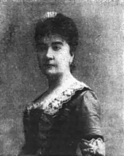 Peyrebrune's nom de plume started with "Georges", after George Sand because Peyrebrune held her work in high regard.[3] The writers Camille Delaville and Rachilde were her friends.[6] Peyrebrune married Paul Adrien Numa Eimery, from Chancelade, signing the marriage license "G. Johnston de Peyrebrune";[8] it was an unhappy marriage and there were no children.[5] She died in poverty and oblivion in Paris in 1917.[6]