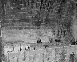In the 1830s Henry Fitzsimmons established the first marble quarry in Pickens County, which was part of the Murphy Marble Belt.[2] In 1884, Samuel Tate founded the Georgia Marble Company, and leased out the land for others to use. In 1905 Colonel Sam Tate partnered with Dawson Mathias Caldwell and the two became co-presidents and general managers of the company. The business grew rapidly, until concrete began to replace marble in buildings.[1] In 1969, with business falling, the company was purchased by Jim Walter Corporation.[2] Over the next few decades it changed hands several times, passing through ownership by Kohlberg Kravis Roberts and Company, Hillsborough Holding Corporation, First Chicago Corporation and IMERYS.[2]