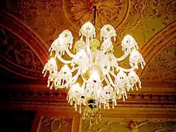 A ceiling from the Dublin townhouse of Viscount Powerscourt, showing the splendour of Georgian decoration. His former townhouse was sensitively turned into a shopping centre in the 1980s.