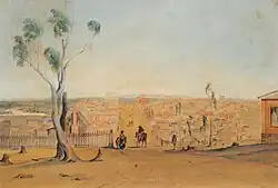 Melbourne had been transformed by the recent discovery of gold at various locations in Victoria (once a district of New South Wales, now a separate colony). Georgiana greatly enjoyed the intellectuals who brought to Melbourne ‘the sense of the living world of art and literature which books and newspapers from Britain could not adequately convey’.[30] This included landscape painters who would subsequently become famous: Nicholas Chevalier and Eugene von Guerard. In 1856 she met a woman as talented as her, Louisa Anne Meredith, who was a painter, poet and writer. They stayed friends until Georgiana's death.[31]