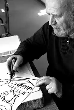 Gaga (Georgy Vasilyevich) Kovenchuk (Russian: Гага (Георгий Васильевич) Ковенчук; 2 December 1933 — 3 February 2015) was a Soviet-Russian artist and writer. Gaga was an artist, painter, graphic artist, book artist and poster artist, printmaker (etching, aquatint, lithography, linocut, woodcut, monotype, silkscreen, stencil), engaged in ceramics. Honored artist of Russia, member of the graphics section of the Saint Petersburg Union of Artists, member of the Union of journalists. Member of the creative Association of poster artists "Боевой карандаш" (Battle pencil).[1]
