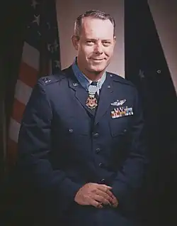 - ^ "SAFB Instructor-Pilot Wins Medal Of Honor In Vietnam", Wichita Falls Record News, Wichita Falls, Texas, volume XLVIII, number 227, 15 May 1968, pages 1 and 2. (subscription required)