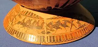 ![]() A Pygmy fights a crane, Attic red-figure chous, ca. 430–420 BC, National Archaeological Museum of Spain. | |