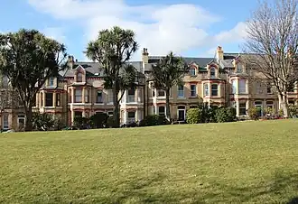 Upon the outbreak of the Second World War, Bersu and his wife were interned on the Isle of Man as "enemy aliens" with other German-born residents.[7] Initially they were separated, with neither aware of the others location, with Maria in Rushen Camp, and Bersu in Hutchinson Internment Camp, Douglas.[5] But in October 1940, they were reunited when interned married couples were permitted to meet at Derby Castle in Douglas. Later they were able to live together at Rushen Camp, which was Europe's only internment camp for married couples during World War II.[8][5]