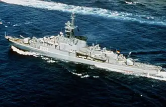 After that it was mothballed at naval arsenal Wilhelmshaven and was on sale. The ship was sold for demolition via the Vebeg, towed to Hamburg on 17 November 1989 and scrapped there in December.[4]