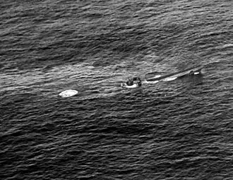 ![]() Sinking of German submarine U-761. U-761’s crew abandons ship after she was crippled by British destroyer and US Navy (VP 63) aircraft attacks in the Strait of Gibraltar.
