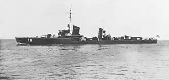 Tiger was laid down at the Reichsmarinewerft Wilhelmshaven (Navy Yard) on 2 April 1927[3] as yard number 112,[7] launched on 15 March 1928 and commissioned on 15 January 1929.[3] The boat was initially assigned to the 3rd Torpedo Boat Half-Flotilla and by the end of 1936 she was assigned to the 2nd Torpedo Boat Flotilla. She made several deployments to Spain during the Spanish Civil War. Around June 1938, Tiger was transferred to the 3rd Torpedo Boat Flotilla which was renumbered the 6th Flotilla on 1 July.[8]