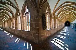 The museum constitutes an architectural monument in itself, as it consists of a variety of buildings erected in different periods. It incorporates the remaining structures of the former Nuremberg Charterhouse (German: Kartäuserkloster), dissolved in 1525 and thereafter used for a variety of secular purposes until in 1857 what was left of these premises, by then badly dilapidated, was given to the museum. The charterhouse was rebuilt and modified to accommodate the collections until the late nineteenth century when Neo-Gothic extensions were added on its south side. During and after the First World War, the "Alter Eingang" (Old Entrance) and the "Galeriebau" (Gallery building) designed by German Bestelmeyer were built to provide an entrance from Kornmarkt and further space.[3]