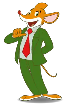 (voiced by Brian Drummond) is the publisher of The Rodent's Gazette, and also the president of the Geronimo Stilton Media Group. He is also the world chess champion after the events of the episode "Gem Gang". He is portrayed as extremely brave in the television series, even though in the books he was never depicted himself as valiant and has no glasses or vest under his jacket. Geronimo has a love of knowledge and has a sense of ethics and morals, but despite this he is still a bit of a klutz. He leads one of the most successful publication groups in the world. Geronimo stars in the book and television series alongside his younger sister Thea Stilton, his prankster cousin Trap Stilton and his nephew Benjamin.
