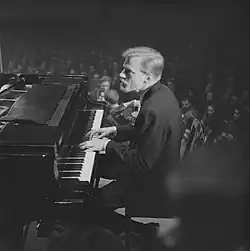 Mulligan continued the quartet format with valve trombonist Bob Brookmeyer replacing Baker,[10] although Mulligan and Brookmeyer both occasionally played piano. The quartet played at the third Paris Jazz Fair in 1954, with Red Mitchell on bass and Frank Isola on drums. This quartet structure remained the core of Mulligan's groups throughout the rest of the 1950s,[10] with sporadic personnel changes and expansions of the group with trumpeters Jon Eardley and Art Farmer; saxophonists Zoot Sims, Al Cohn and Lee Konitz; and vocalist Annie Ross. In 1957, Mulligan and his wife, Arlyne Brown Mulligan (daughter of composer Lew Brown), had a son, Reed Brown Mulligan.