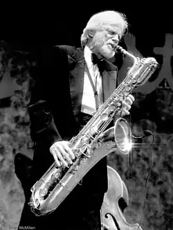 Gerald Joseph Mulligan (April 6, 1927 – January 20, 1996), also known as Jeru,[6] was an American jazz saxophonist, clarinetist, pianist, composer and arranger.[7] Though primarily known as one of the leading jazz baritone saxophonists—playing the instrument with a light and airy tone in the era of cool jazz—Mulligan was also a significant arranger working with Claude Thornhill, Miles Davis, Stan Kenton, and others. His piano-less quartet of the early 1950s with trumpeter Chet Baker is still regarded as one of the best cool jazz ensembles. Mulligan was also a skilled pianist and played several other reed instruments. Several of his compositions including "Walkin' Shoes" and "Five Brothers", have become standards.