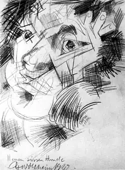 Wollheim's best-known work is probably Der Verwundete, 'The Wounded Man' (1919), one of the most horrifying images to be produced by any artist who had experienced the First World War. The oil on board painting shows a half-naked soldier writhing in agony after receiving a death-wound in the belly.[1] A version of this image was used as one of 'Dr. Lecter's drawings' in the film Silence of the Lambs.