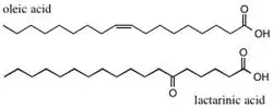 Lactarinic Acid, isolated from fungi of the Lactarius genus, was shown to contain a ketostearic acid.[20] The Robinsons showed that this was in fact 6-ketostearic acid by doing a Beckmann Transformation[21] on the oxime of lactarinic acid. They then synthesized 6-ketostearic acid via a reaction of ethyl sodio-2-acetyl-n-tridecoate and 5-carbethoxyvaleryl chloride and then hydrolysis to prove the structure of lactarinic acid.[19]