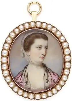 The duchess was described by Horace Walpole as being "stingy" and "avaricious".[4] Nevertheless, in 1748 she held a ball that was attended by the King, George II; this was described by Henry Fielding as "a most noble entertainment".[5] It was also said that she "understood thoroughly the value of court smiles", and in 1762 she attended the French court at Versailles in an ambassadorial role.[6]