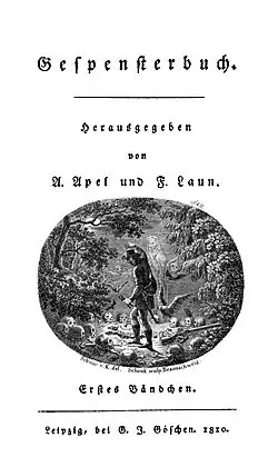 The Gespensterbuch (literally 'Ghost Book' or 'Book of Spectres'[1]) is a collection of German ghost stories written by August Apel and Friedrich Laun and published in seven volumes between 1810 and 1817. Volumes five to seven were also published under the title Wunderbuch ('Book of Wonders'). The final volume was published after Apel's death, with stories by his friends Friedrich de la Motte Fouqué and Carl Borromäus von Miltitz. Laun, Fouqué, Miltitz, and Caroline de la Motte Fouqué followed up on the series by publishing another book of ghost stories Aus der Geisterwelt ('From the Spirit-World') (1818).