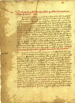 The Gesta comitum Barcinonensium[1] ("Deeds of the counts of Barcelona")[2] is a Latin chronicle composed in three stages by some monks of Santa Maria de Ripoll and recounting the reigns of the Counts of Barcelona from Wifred I (878–97) to James II (1291–1327), as late as 1299. It is an adulatory history of the dynasty known as the House of Barcelona. In presenting the rulers of the county of Barcelona as the descendants of Charlemagne, the monks sought to justify their independent policy with respect to the King of France, their nominal sovereign. The Gesta is the chronological backbone.