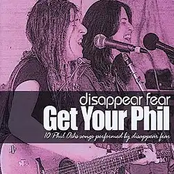 Get Your Phil is the sixth studio album released by Disappear Fear.[1] This release marks the return of the harmonizing vocals of sisters: Sonia Rutstein (SONiA) and Cindy Frank (CiNDY); which have not been featured since the group's 1996 album, Seed in the Sahara. The album has been described as, "100% made in America, folk music."[2] All tracks are songs written by Phil Ochs, except for "Because the Night" which was penned by Patti Smith and Bruce Springsteen.[3] The album was released on July 4, 2011. Cindy said of the release date, "We think a new anti-war album released on Independence Day is a great idea and we hope that Phil would be proud."[2] The majority of the instrumentation on the album is done by Sonia. She plays the acoustic guitar, piano and harmonica. The album was engineered and produced by Grammy nominee, John Jacob.