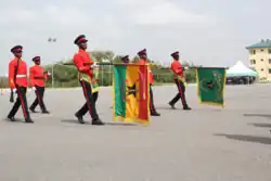 The program consists of a four-week "Ginger" phase followed by an eight-week post-Ginger phase.[6] It consists of classroom lessons and field exercises at Bundase, Aburi Mountains, and the Michel Camp-Zenu-katamanso-Gbatsona general areas.[6] The cadets practice conventional warfare with additional tactical drills conducted on the plains of the Michel camp.[6] At Achiase, the Jungle Warfare School offers an introduction to jungle operations.[6]