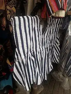 The Ghanaian Smock or Tani is a fabric worn by both women and men in Ghana.[1] It is the most popular traditional attire in the country. The fabric is called Tani in Dagbani, while the male and female wear are respectively called Bin'gmaa and Bin'mangli. The smock is formally worn with a hat (zipligu)/ scarf (bobga), footwear (muɣri), and a trouser (kurugu).[2]