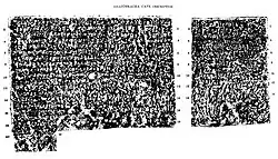 The caves have an inscription by Varahadeva, a minister of the Vakataka dynasty under King Harishena (r. c. 475 – c. 500 CE).[2] Varahadeva is also known for a decatory inscription in Cave 16 at Ajanta caves in which he affirms his devotion to the Buddhist faith: "regarding the sacred law as his only companion, (he was) extremely devoted to the Buddha, the teacher of the world".[2]