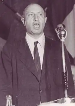 In early 1946, what was by then the Union of Patriots became the National Popular Party, with Vlădescu-Răcoasa as vice president.[16] The party soon decided to take part in the upcoming election as part of the FND.[17] In September, he replaced the deceased Mitiță Constantinescu as party president, and in the November election, won a seat as deputy for his home county. The following day, he was named full professor of economic sociology and social policy at the Bucharest Academy of Economic Studies (ASE).[18]