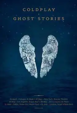 The Ghost Stories Tour was the sixth concert tour undertaken by British rock band Coldplay. It was announced on 17 April 2014 and staged to promote their sixth studio album, Ghost Stories. The performances marked a return to intimate venues after the stadium dates of the Mylo Xyloto Tour (2011–2012). The band played all songs from the standard version of the album, interspersed with some of their previous material. Concerts began at Cologne's E-Werk on 25 April 2014 and ended at Munich's BMW Welt on 6 December 2014, being noted for combining live and pre-recorded content for small settings.[3]