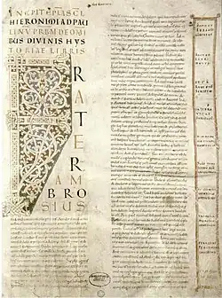 The Giant Bible of Echternach is an illustrated giant bible that was made for Abbot Regimbert of the abbey of Echternach between 1051 and 1081. Today, it is kept in the National Library of Luxembourg as manuscript MS 264.[1][2][3] Prior to its acquisition by Luxembourg in 1951, it was in the Ducal Library of Gotha.[4]