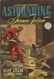 "Giant Killer" is a science fiction short story by A. Bertram Chandler. It was first published in the October 1945 issue of Astounding Science Fiction, and later included in many science fiction anthologies, including World of Wonder edited by Fletcher Pratt.[1] In 1996 it was shortlisted for a Retro Hugo Award for Best Novella.[2]