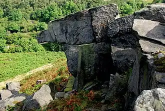 - ^ Historic England. "Hob Hurst's House: a square, banked and ditched burial cairn with cist on Harland Edge (1008600)". National Heritage List for England. Retrieved 21 August 2020.
