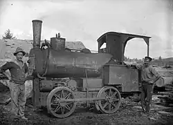 0-4-0T locomotive #1 was the first locomotive built by Gibbons & Harris for Robert Pearce Gibbons, a brother of one of the founders, and a well-known Northland contractor and saw mill owner. The locomotive had horizontal cylinders underneath the smokebox and was driven through spur gears to the front axle. The drive was taken to the rear axle by means of a pair of coupling rods.[1]
