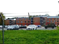 The Royal Engineers first arrived at Minley with an engineer brigade in the early 1970s. The corps occupied Minley Manor and initially used it as their brigade headquarters. The Queen visited the site to initiate works on modern military facilities on the opposite side of the A327 Minley Road in October 1976.[1] The new facilities were officially opened as Gibraltar Barracks by General Sir William Jackson in September 1979,[2] the manor going on to serve as its officers' mess.[3]