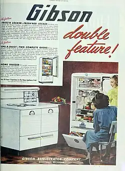 In 1956, Hupp Corporation acquired Gibson.[2] In 1967 Hupp merged with White Consolidated Industries (WCI), which created the White-Westinghouse brand in 1975.[3] WCI was purchased by Electrolux in 1986, which retained the Gibson brand.[4]
