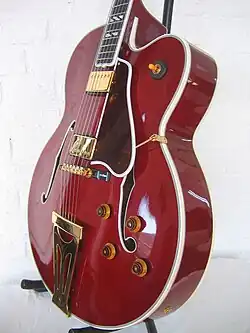 The Gibson Super 400 is an archtop guitar. It is a highly influential guitar model that inspired many other master guitar builders (including Elmer Stromberg and John D'Angelico).[1] It was first sold in 1934 and named for its $400 price (equivalent to $9,402 in 2024),[2] like many Gibson guitars of that era.