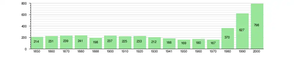 As of 2000, there were 314 private households in the municipality, and an average of 2.5 persons per household.[8] There were 57 households that consist of only one person and 20 households with five or more people. Out of a total of 320 households that answered this question, 17.8% were households made up of just one person and 2 were adults who lived with their parents. Of the rest of the households, there are 132 married couples without children, 108 married couples with children There were 10 single parents with a child or children. There were 5 households that were made up unrelated people and 6 households that were made some sort of institution or another collective housing.[9]