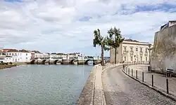 The Gilão (Portuguese pronunciation: [ʒiˈlɐ̃w]) is a river in southern Portugal. It is approachable from the Atlantic Ocean, where it enters at the town of Tavira in the Algarve, 35 kilometres (22 mi) east of Faro. The river Gilão changes its name to Rio Séqua at the ancient bridge named Ponte Romana in the centre of Tavira. The river's source is located in the Serra do Caldeirão mountains of the central Algarve, at the confluence of the Asseca, Zimbral and Alportel rivers, the latter rising north of São Brás de Alportel. From here it flows in a southeasterly direction and passes through the Ria Formosa national park south of Tavira, eventually meeting the Atlantic Ocean between the barrier islands of Tavira and Cabanas.
