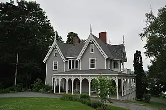 The Gilmore House is a historic house at 764 River Road in Calais, Maine. The 2+1⁄2-story wood-frame house was designed by New Brunswick architect Matthew Stead and built c. 1850, probably for Alexander Gilmore, an Irish immigrant and local merchant. The house is a remarkably sophisticated execution of Gothic Revival styling, given that at the time of its construction, Calais was essentially a frontier town. It is the most sophisticated of a trio of Gothic Revival houses.[2] It is, like one of its neighbors, the George Washburn House, listed on the National Register of Historic Places, although its address has changed since its listing.[1]