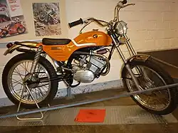 With the outbreak of the First World War and, after, the Spanish Civil War, Gimbernat was able to survive both economic conditions because their suppliers were small workshops nearby.[2] Thanks to the experience gained and good results with bicycles, in the mid-fifties they began manufacturing their first mopeds, starting by mounting the Gamo engine made in Barcelona by the renowned Parés brothers.