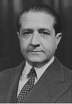 A career diplomat,[1] Ginés Vidal held various positions in Spanish embassies in Havana, Warsaw, Berlin and Copenhagen, as well as at the High Commission of Spain in Morocco. After the outbreak of the Spanish Civil War, he joined the Nationalist faction. In 1938, he went on to serve in the Ministry of Foreign Affairs of the Nationalist zone and was appointed head of the National Service of Politics and Treaties.[2] This position earned him a place on the Cultural Relations Board of the Ministry of Foreign Affairs.[3] He became a close collaborator of Foreign Minister General Francisco Gómez-Jordana Sousa.[4] In August 1940 he was part of an economic delegation that visited Berlin.[5] At the end of 1942 he was appointed ambassador of Francoist Spain to Nazi Germany, replacing the pro-Nazi José Finat.[4] During this period, his missions were the acquisition of German military equipment,[6] or the withdrawal of the Blue Division from the Russian Front. Ginés Vidal left Berlin on 11 March 1945, and died of cerebral embolism shortly after, on 28 April, while he was in Bern, Switzerland.[7]