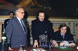 Gino De Dominicis with art historian Vittorio Sgarbi.