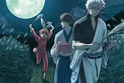 The episodes of the third season of the Japanese anime television series Gintama aired on Japan's TV Tokyo from April 3, 2008 to March 26, 2009.[1][2] The third season has a total of 51 episodes expanding the series' episodes to 150. They are animated by Sunrise. Episodes 100 to 105 were directed by Shinji Takamatsu and Yoichi Fujita, while in following episodes Fujita was the only director.[3] The anime is based on Hideaki Sorachi's manga of the same name.[4] The story revolves around an eccentric samurai, Gintoki Sakata, his apprentice, Shinpachi Shimura, and a teenage alien girl named Kagura. All three are "free-lancers" who search for work in order to pay the monthly rent, which usually goes unpaid anyway.