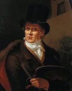 Gioacchino Giuseppe Serangeli was born in Rome in 1768. He trained as a painter at the Accademia Ambrosiana in Milan, during the period of political turmoil before the French Revolution. He made a visit to Rome before returning to Milan. In 1790 he crossed the Alps to France, where he found a vibrant artistic scene enhanced by the political situation and the rediscovery of classical art, and in which foreigners were welcome. He soon became known, and on 31 December 1790 was invited to participate by the Académie royale de peinture et de sculpture.[1]
